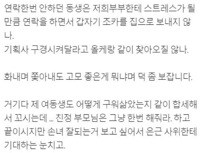 눈치 없는 동생부부가 본인 딸 연애인 만들어 달라고 한 썰