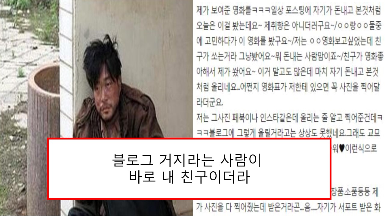 본인 돈을 절대 안쓰고 친구가 쓴 것을 자기껏 마냥 블로그 글을 쓰는 친구