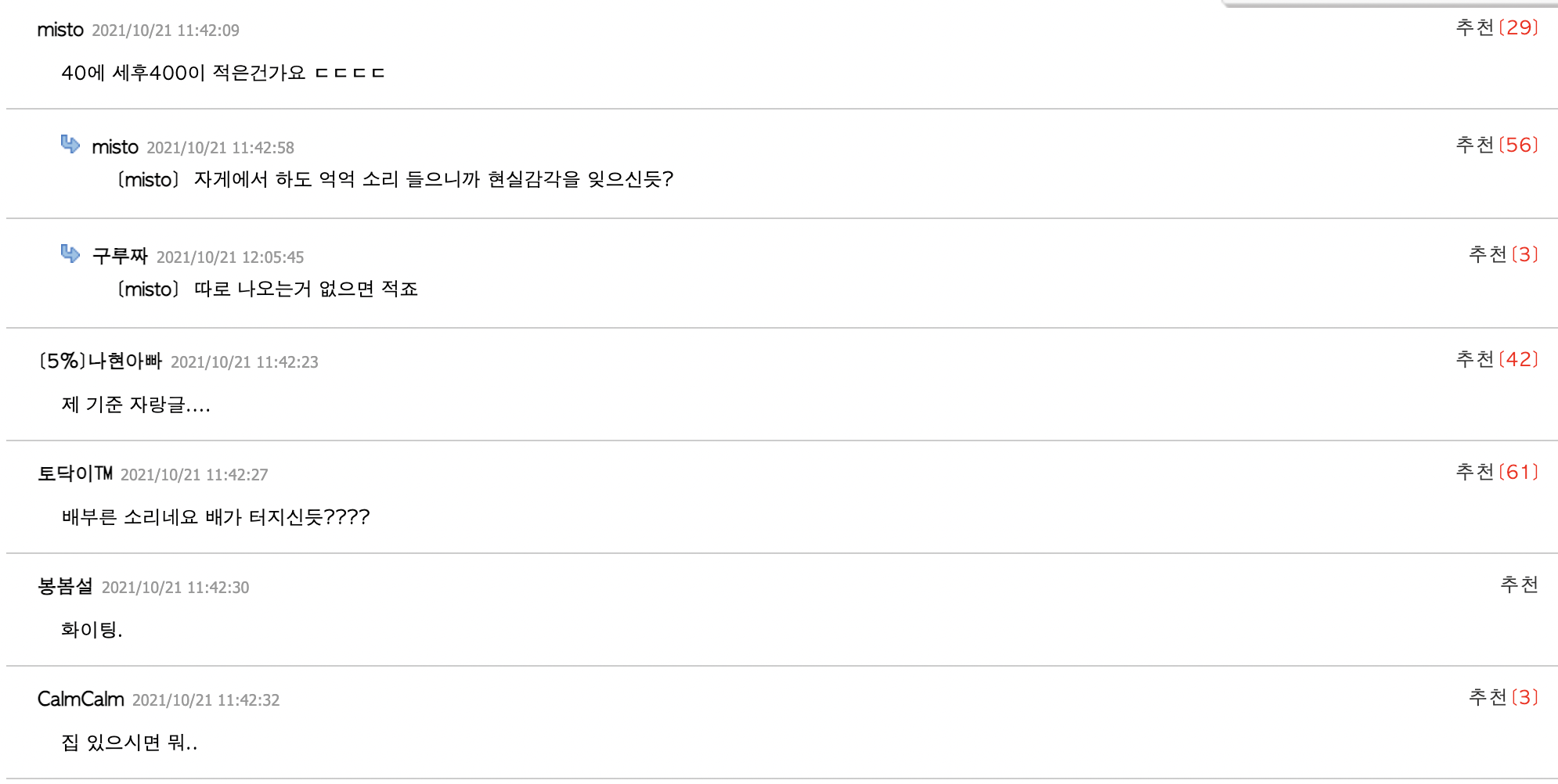 - 현 마흔, 실수령 세후 400만