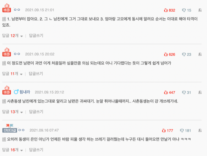 한마디로 제 신랑을 떠본겁니다.어떤 결과를원했는지 모르겠지만 지금 너무 화병나 죽을것같고 엄마에게 먼저 이야기할까 고모에게먼저이야기를할까 그ㄴ남친에게이야기를할까 고민입니다.