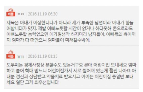 입장 차이가 있는 것 같은데.. 댓글에는 여자쪽 의견이 많내.