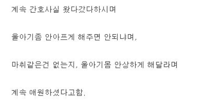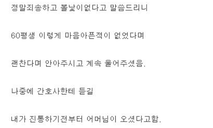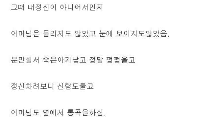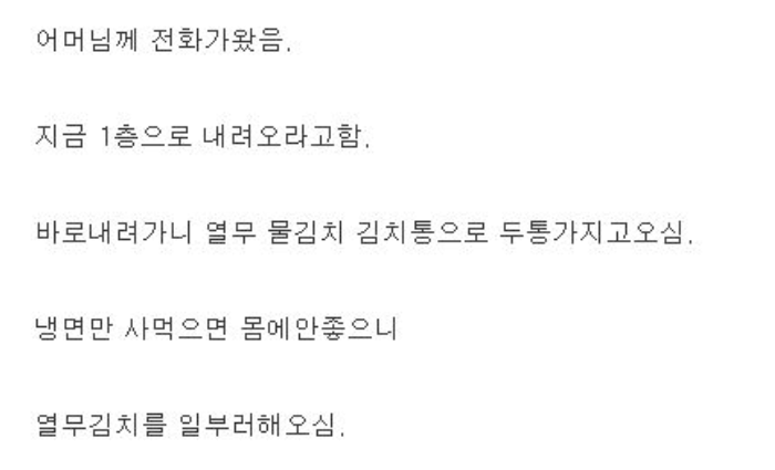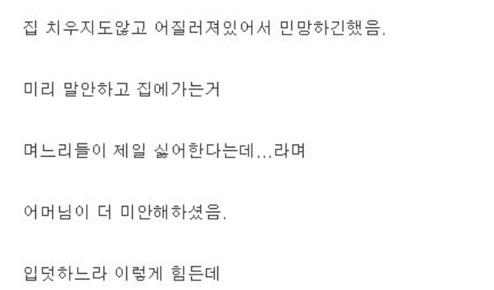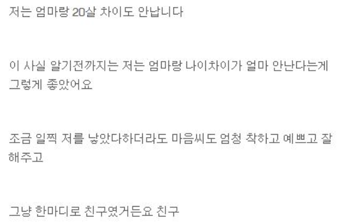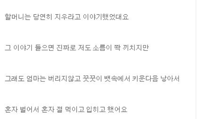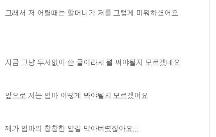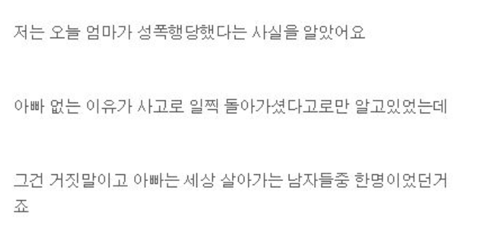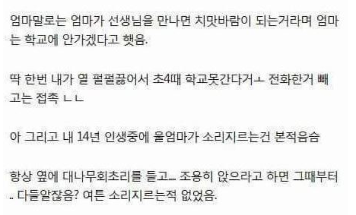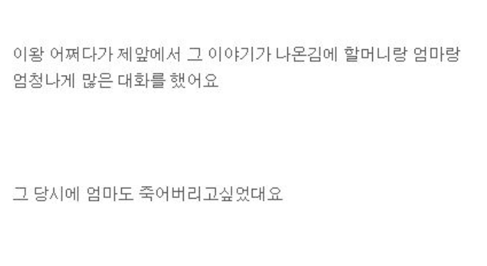 오늘 어머니로부터 충격적인 소식을 들었습니다
