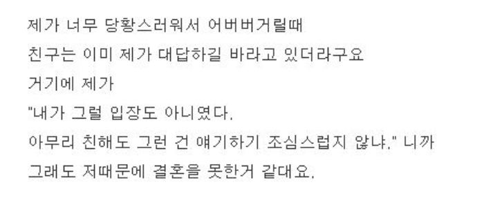 본인 결혼을 말리지 않았다고 화내는 대학교 친구