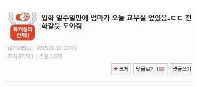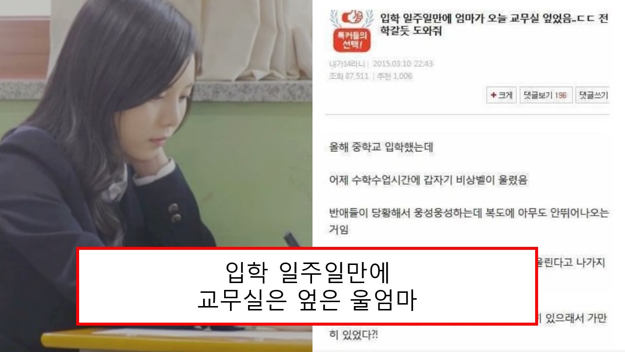 입학 일주일만에 엄마가 교무실 찾아와서 엎었습니다