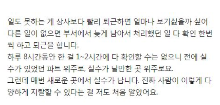 일을 전혀 못하는데 제 자신에게 화가 납니다