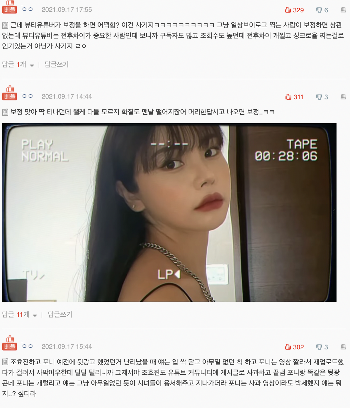 댓글 진짜 가관이네...이 얼굴을 욕하는 건 진짜 타격 1도 없음ㅋㅋㅋㅋㅋㅋ