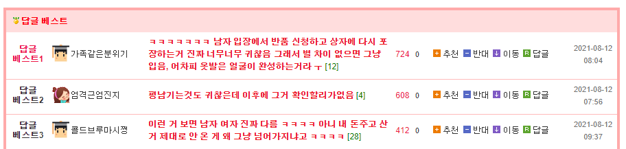 입장 차이가 있는 것 같은데.. 댓글에는 여자쪽 의견이 많내.